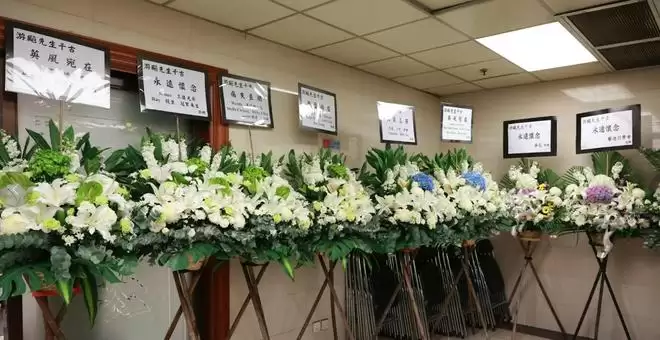有“TVB御用烂仔”之称的游飚,上月因脑出血而离世,终年57岁。今日(21日)在世界殡仪馆设灵,于翌日(22日)早上10时半出殡后,灵柩随即移送和合石火葬场进行火化礼,仪式以道教进行。游飚丧礼灵堂以简洁为主,横匾写上“德范长存”,遗照上的游飚以西装Look打扮,面上留有胡须并带着微笑。
