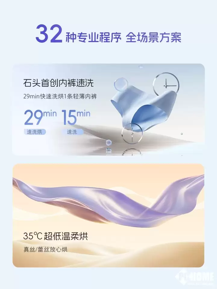 真正的便捷并非功能的简单堆砌,而是对细分需求的精准把握。石头M1S Ultra的强大之处,不仅体现在基础的清洁能力上,更在于其对不同使用场景的深度定制能力。机器内置了多达32种洗涤烘干程序,其中包含大量针对迷你洗衣机核心使用场景的独家设计。