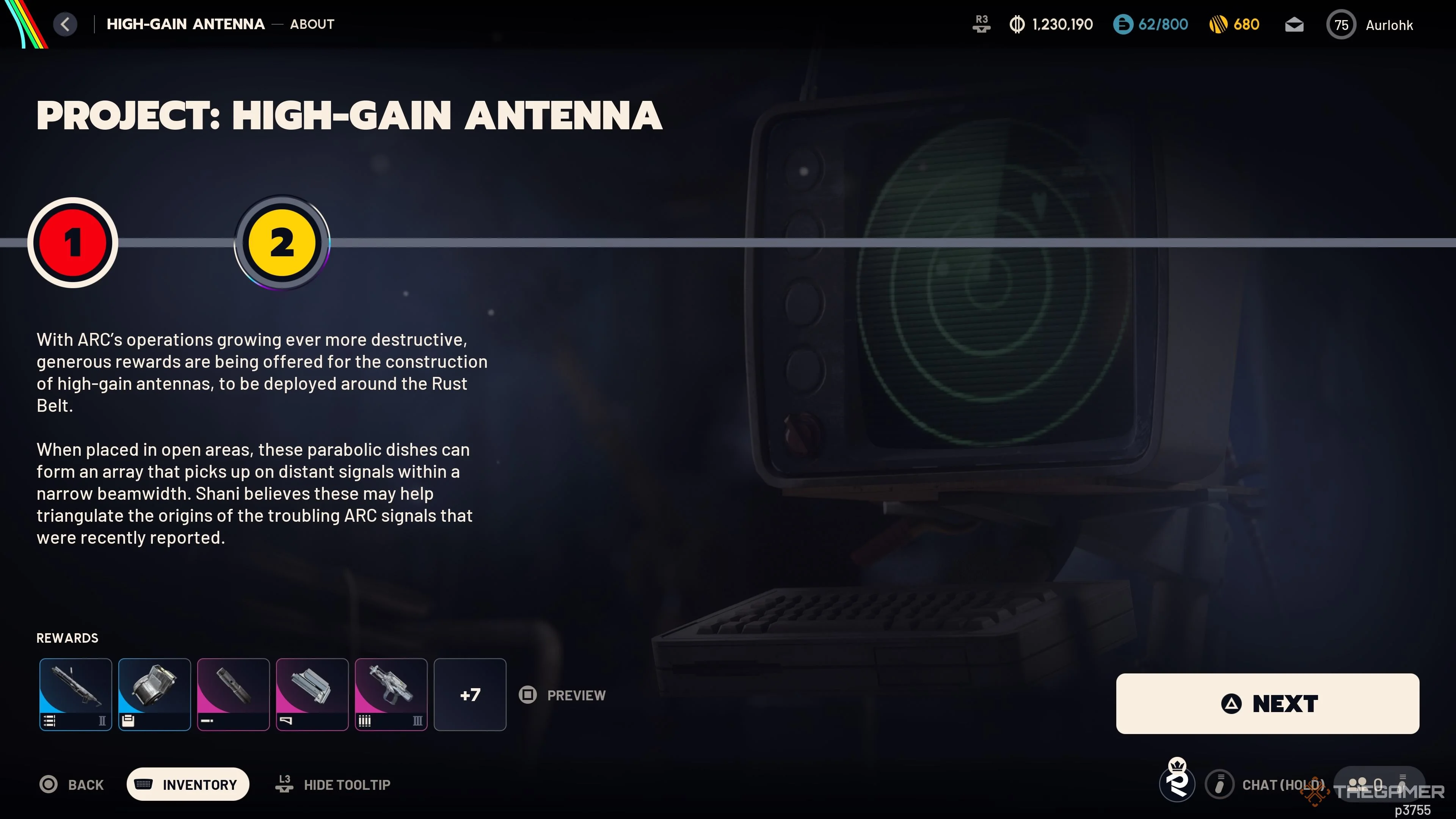 终于来到最终阶段“抛物面天线”。这一步可谓是第二阶段的“终极强化版”,你需要再次大量挑战汽化器和评估者,同时还要在整张地图上追踪那些行动敏捷的侦察者。所需材料包括侦察者保险库、ARC合成树脂,以及数量大幅增加的汽化器调节器和评估者矩阵。
