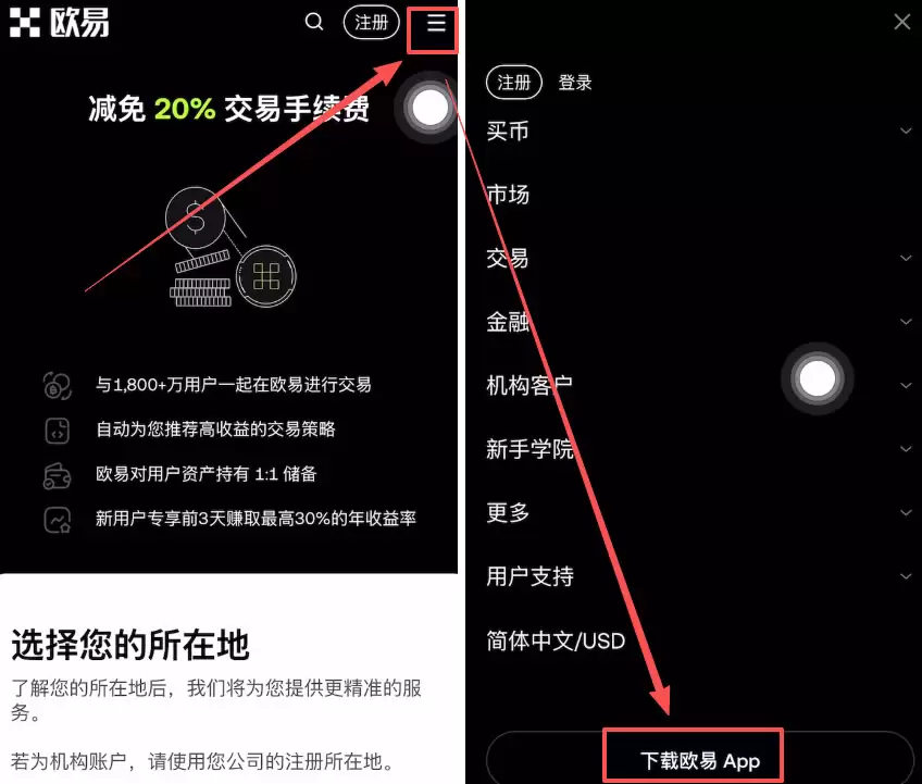 3、选择「下载欧易APP」选项