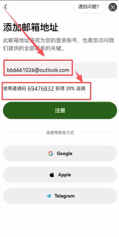 3.填写信息:输入邮箱地址。