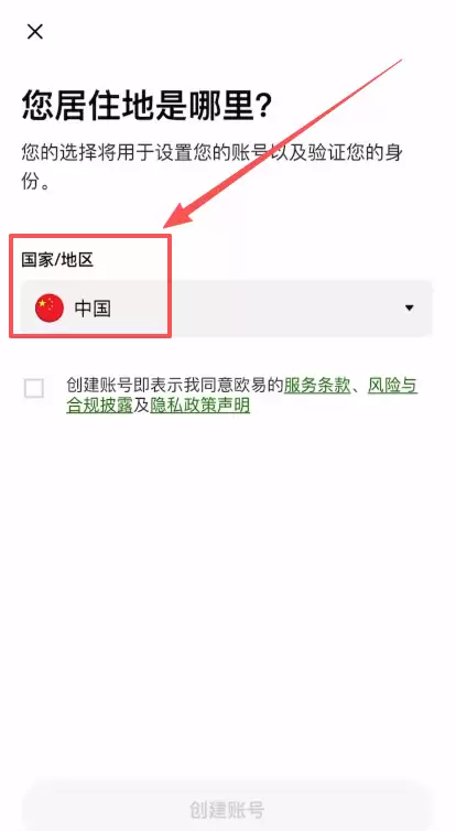 1、确认地区:再次确认居住国为中国。