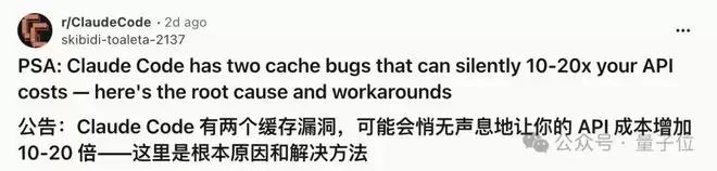 起因是两天前,有一位用户直接去逆向了Claude Code,结果发现两个独立bug,并po在了reddit上。