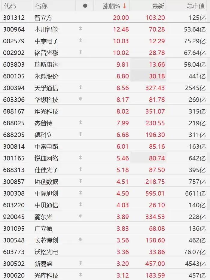 CPO概念股全线上涨,天孚通信飙涨8%,中际旭创跟涨超4%