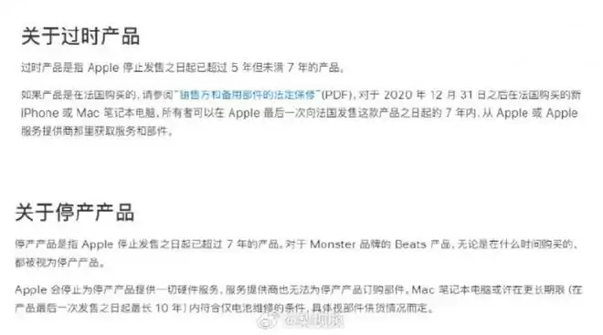 苹果最新过时产品停售满5年但未满7年,仅提供有限维修支持。而停产产品已停售超过7年,将全面停止所有硬件服务。
