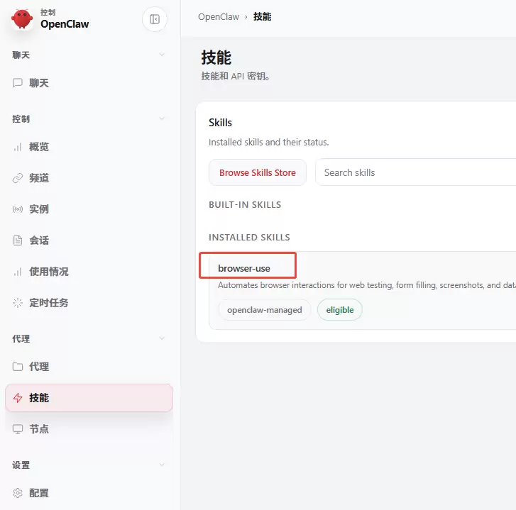 3.2 在 OpenClaw 中添加 Browser Use 技能