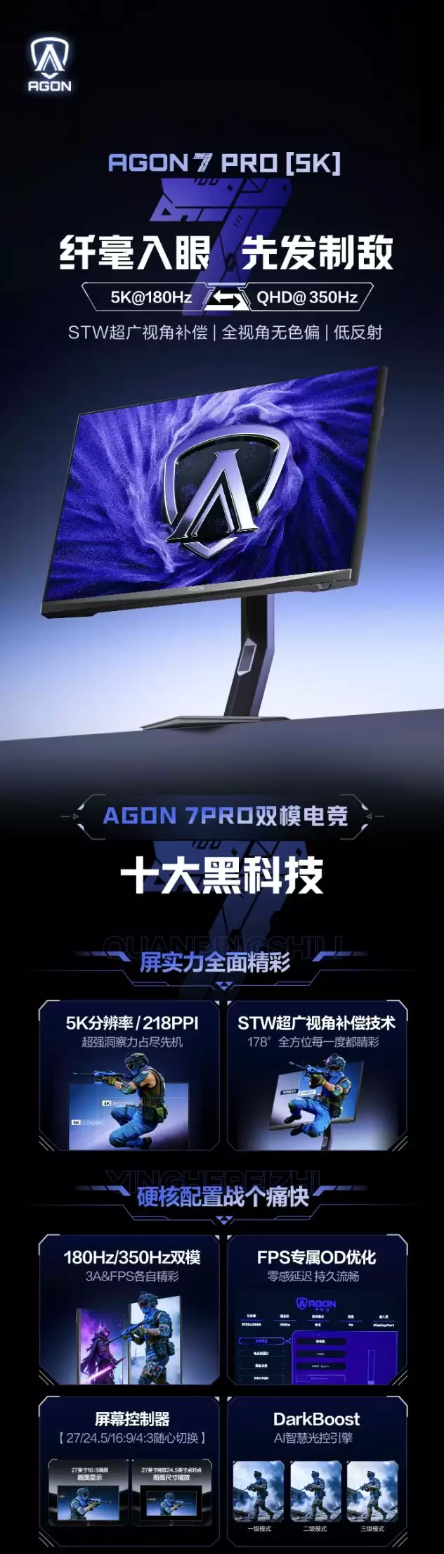 AOC“AGP277KX”显示器发售:5K 180Hz/2K 350Hz双模,5999元