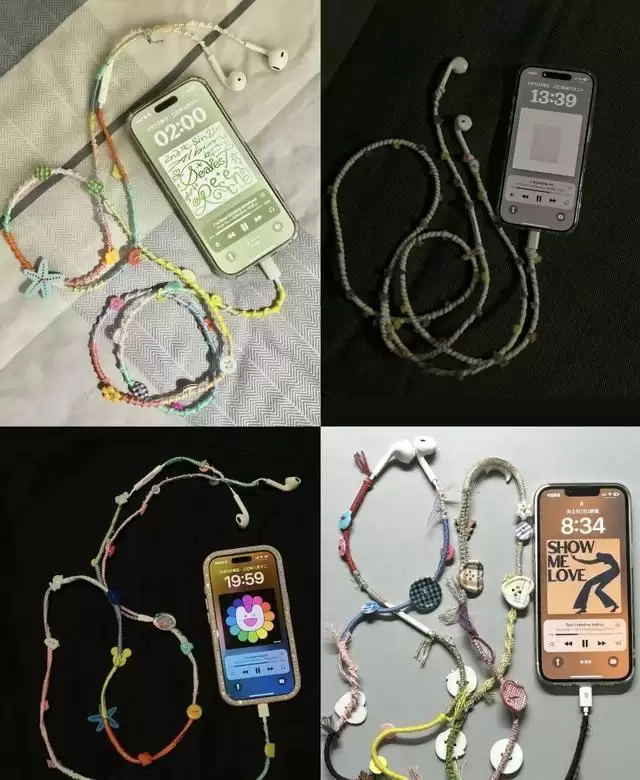 更有意思的是,这根线可以“再设计”。有人给有线耳机做手工电镀、贴贴纸、包线改造,把它当作可DIY的饰品;有人直接把耳机绕在手腕当手链、绑在发辫当发绳,甚至像串珠一样参与叠戴。不少网友表示,有线耳机从听歌工具,变成可塑的时尚材料,和墨镜、迷你包等单品一样,以一种“有态度”的方式回来了。