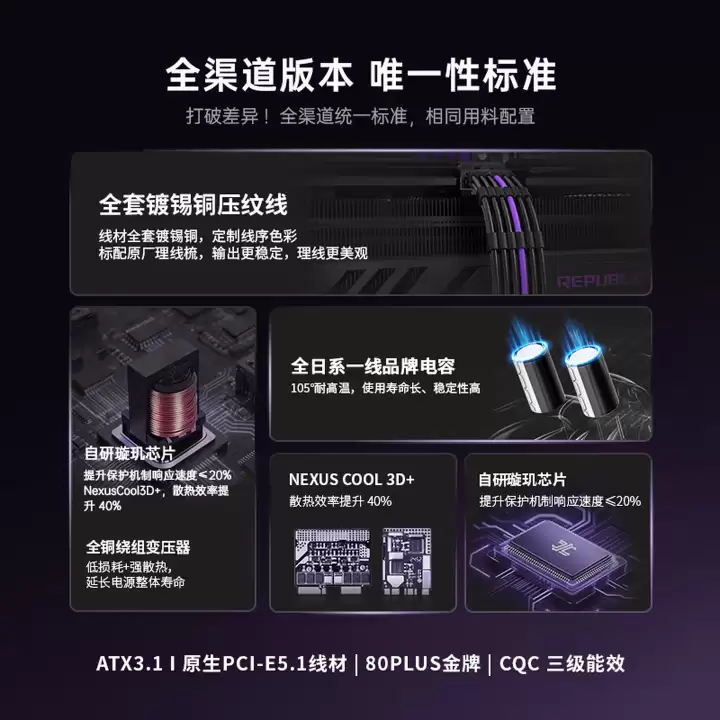 80PLUS金牌能效与ATX 3.1规范,从容应对瞬时峰值功耗