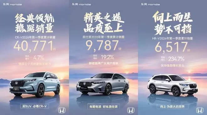纵观东风本田2026年第一季度的表现,可以用“经典车型稳如磐石,新兴力量爆发增长”来概括。