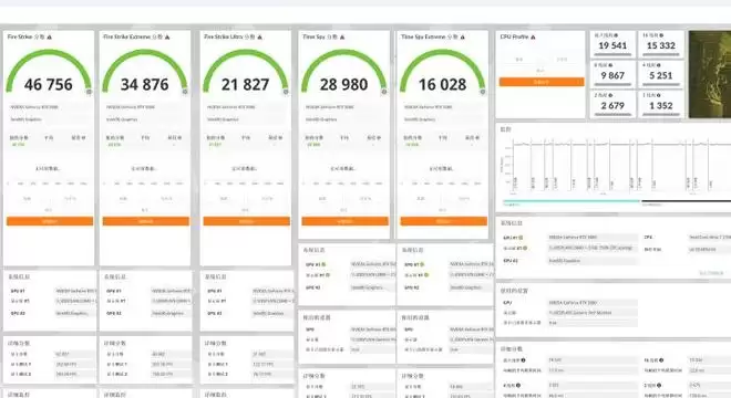 Fire Strike、Fire Strike Extreme与Fire Strike Ultra三个场景的显卡分数分别为62827、40062和21582,性能表现无愧于次旗舰水平。