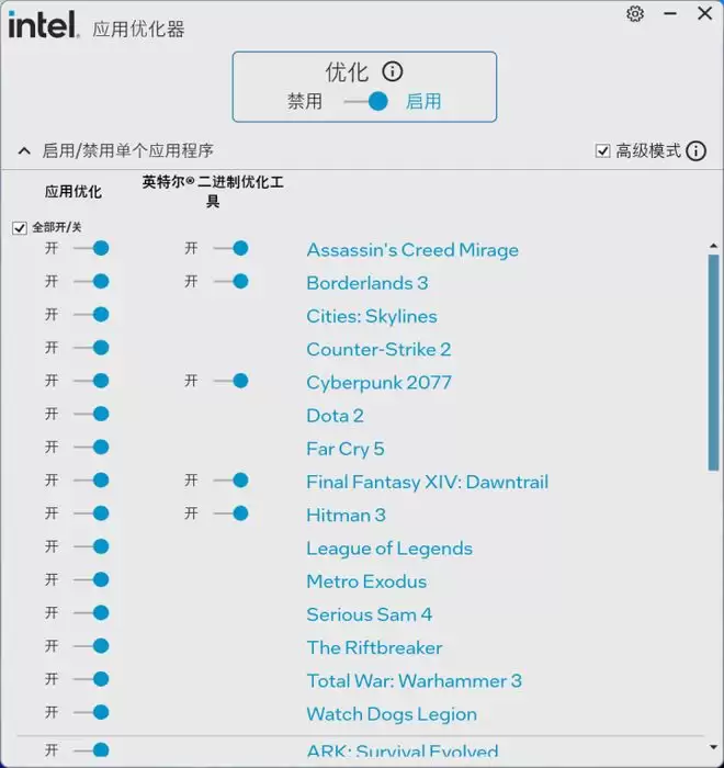 另外值得一提的是,在Z890平台和酷睿Ultra 200s/200s Plus平台上,还可以支持英特尔APO(Intel Application Optimization)和Intel Binary Optimization Tool(iBOT)二进制优化技术,能够更充分地利用CPU核心,实现《赛博朋克2077》《古墓丽影暗影》《刺客信条幻景》等游戏FPS的提升,对于玩家们来说也是一个利好。