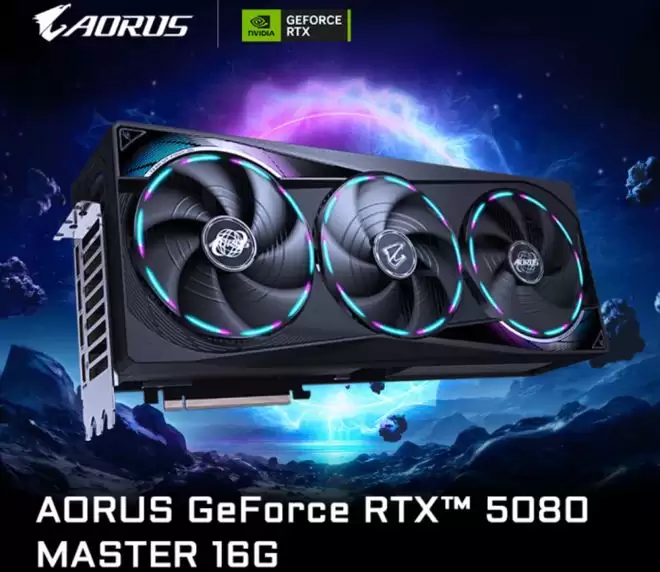 显卡方面,此次我们使用的是技嘉GeForce RTX 5080 MASTER 16G显卡,黑色卡体+炫彩光轮风扇的设计与主板也是十分搭配。作为NVIDIA GeForce RTX 50系列中的4K顶流显卡,RTX 5080超级雕采用NVIDIA BlackWell架构,采用GB203核心,流处理单元数量高达10752个,配有256bit、16GB容量的GDDR7高速显存。原厂超频设计,相比公版最高核心频率由2617 MHz提高到了2805 MHz,性能释放更强。