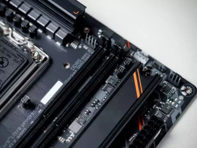 内存配置方面,虽然受限于主板尺寸,技嘉Z890M战鹰DUO X主板只配了两条双通道内存,但带来了D5 DUO X模式,同时支持CUDIMM/CQDIMM技术,因此两条就能做到最大256 GB的容量,支持XMP一键自动超频,并且最高频率达到了惊人的10266 MT/s!此外,还同样加入了技嘉主板独有的D5黑科技,可以进一步降低延迟、提高带宽,为内存性能带来鸡血加成。