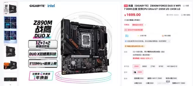目前技嘉Z890M战鹰DUO X主板正在京东商城热销中,新品上市限时售价仅为1699元。