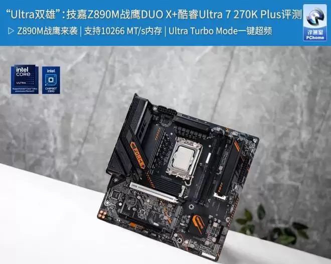 今天来到PChome评测室的是技嘉Z890M FORCE DUO X WIFI7主板(以下简称技嘉Z890M战鹰DUO X主板)。这是一款超迷你的ITX主板,以优质用料、精致做工、增强散热以及超高的性价比,致力于成为酷睿Ultra 200S Plus的亲密伙伴。