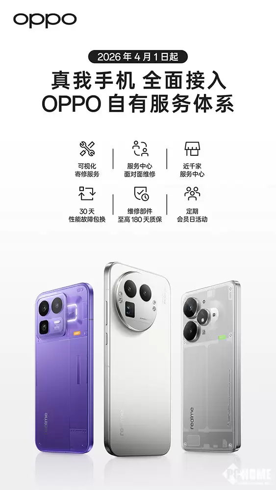 OPPO官方正式公告:2026年4月1日起,realme全面接入OPPO全国售后服务网络
