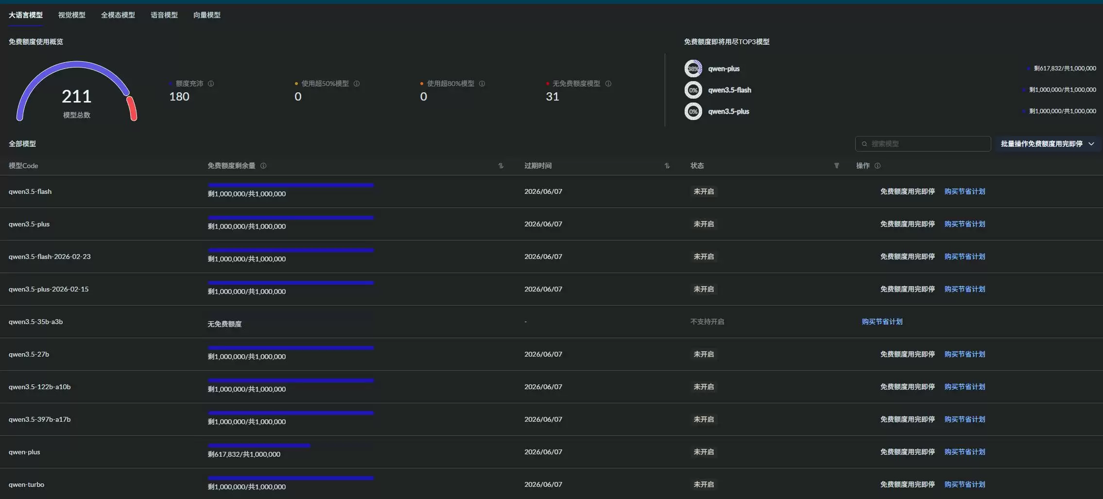 在模型服务配置上,一个高性价比的方案是接入阿里云百炼平台。该平台为新用户提供了充足的免费额度,非常适合用于前期测试、功能验证及轻量级的自动化任务场景。
