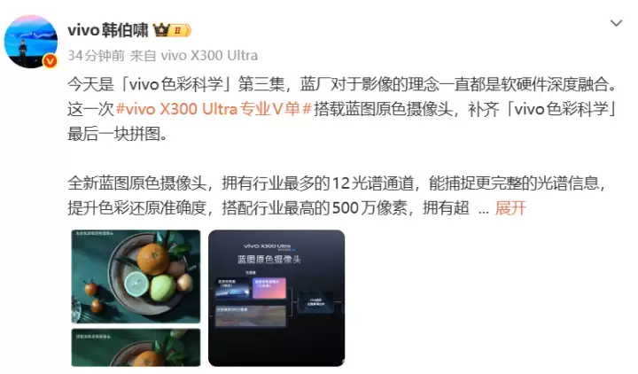 如果说顶级硬件是影像系统的骨架,那么精准的色彩科学便是其灵魂。产品经理韩伯啸的深度技术分享,清晰揭示了vivo X300 Ultra在“灵魂”层面的革命性突破——全新升级的「蓝图原色摄像头」系统。