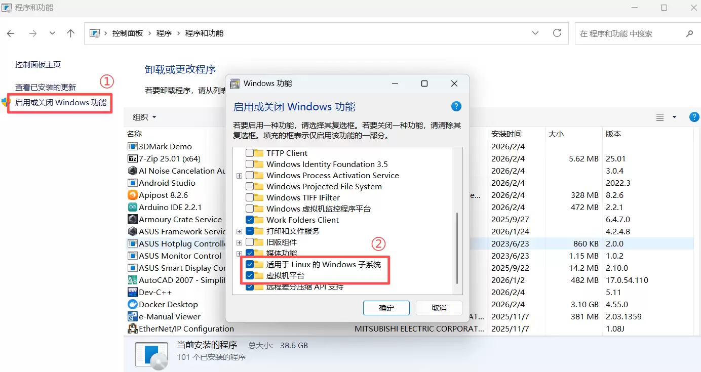 首先,需要激活Windows系统的两项关键功能。请通过控制面板或系统设置启用“适用于Linux的Windows子系统”和“虚拟机器平台”这两个选项。系统会提示重启计算机,请按照提示完成重启操作。