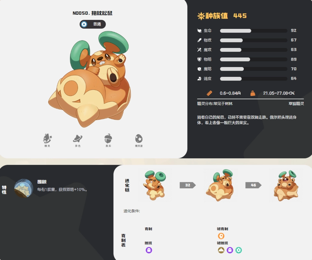 在洛克王国世界中,抱枕松鼠是备受玩家喜爱的萌宠之一。它最显著的特征,就是整天悠然自得地骑坐在自己蓬松的大尾巴上,仿佛早已将用双脚行走的日常抛在了脑后。不仅如此,这个小家伙还保留着一个极其逗趣的习惯:它会时不时将小巧的脑袋埋进自己柔软温热的身体里,然后整个身体蜷缩起来。当你第一眼看到它时,那团在一起的憨态,简直像极了一颗圆润饱满、毛茸茸的巨型果实,要么悬挂在魔法工坊的树枝头,要么静悄悄地窝在某个洒满阳光的角落。这份天真慵懒的姿态,成为了它极具辨识度的萌点。