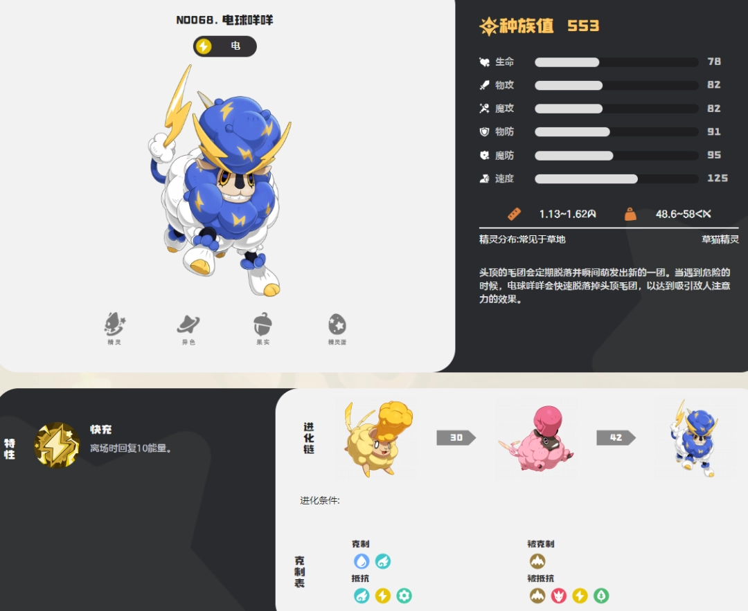 你是否注意到它头顶那团标志性的蓬松毛球?这绝非简单的装饰,而是一项精妙绝伦的生物设计。电球咩咩拥有一种独特的生理特性:其头顶的毛球能够周期性自然脱落,并几乎在瞬间完成再生,长出一团全新的绒毛。这不仅是它可爱外表的来源,更是一套高效的生存策略与实战机制。