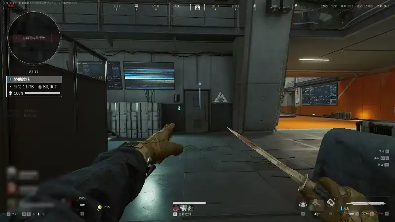 门禁位于地图右侧的航天工业区内。核心提示是:你必须找到名为“组装车间”的建筑,并设法进入其第二层。内部结构稍显复杂,建议结合图片参考以准确找到。