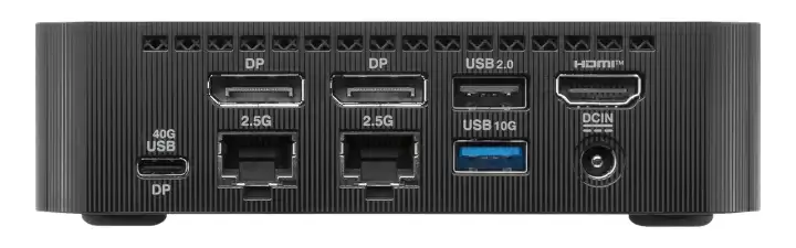 接口与扩展能力通常是衡量迷你主机实用性的重要标准,而华硕ExpertCenter PN55在此方面的表现相当出众。主机正面集成了2个USB-A 10Gbps接口、1个USB-C 10Gbps接口以及一个3.5mm音频复合插孔,方便连接U盘、耳机等常用外设。其强大的扩展潜力主要体现在机身背部:这里包含一个全功能USB4 40Gbps接口(支持视频输出与PD供电)、1个USB-A 10Gbps接口、1个USB 2.0接口、双DisplayPort 1.4接口、双2.5千兆以太网口,以及一个HDMI 2.1接口。如此齐全的接口配置,特别是双网口设计与支持四屏同步输出的能力,使其能够轻松应对专业办公、金融交易、设计监控等多屏协同及高速网络应用场景。