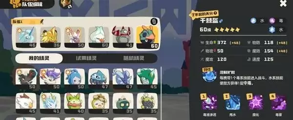 千棘盔: 这是一位能够独立构筑战术体系的特殊精灵。结合其天赋特性,可采用“三毒一水”的技能搭配。使用“甩水”可直接为对手附加三层中毒状态,随后衔接“腐化”技能,能大幅降低对手高达90%的双攻属性。此连招组合法力消耗低,持续压制力惊人,且毒系特性使其免疫中毒效果,在持久消耗战中优势明显。