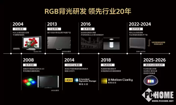 所有卓越的用户体验,均源于深厚的技术积累。在RGB背光显示领域,索尼是毫无争议的先驱与标准定义者,其技术探索已持续超过二十年。回顾技术发展历程,重要里程碑始于2004年推出的全球首台RGB LED背光电视QUALIA 005。此后,从动态背光系统大师版、量子点广色域技术,到高密度LED背光控制与高精度灰阶管理,索尼不断刷新着电视在亮度、对比度与色彩纯度方面的行业上限。正是这些坚持不懈的创新,为今日真彩RGB技术的成熟与落地奠定了坚实基础。