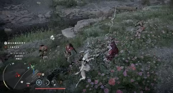 具体位置:根据上方游戏内截图所示的地标与环境,你需要精准抵达目标区域。准确找到地点是成功获取这把雷属性武器的第一步。