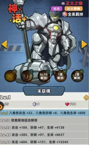4. 终极技能:裂地猛击(开局无敌与群体控制) 正义之锤的大招分为被动常驻与主动释放两部分,功能性极为全面。 被动效果(开局优势):战斗开始时立即获得满额(100%)能量屏障,并附带持续3秒的无敌状态。升星后,即使屏障破碎,也会提供短暂的不屈效果,并锁定攻击者造成反击伤害。这让他无论在PVE还是PVP中,都是顶级的T0开局坦克,能有效抵御敌方第一波爆发。 主动效果(团控之王):挥动重锤猛击地面,对大范围内的所有敌人造成击飞,落地后接续长达2秒的眩晕效果。这是一个控制范围广、控制链稳定的群体硬控技能,无论是用于先手开团、中断敌方关键技能,还是保护队友、创造输出环境,表现都无可挑剔。