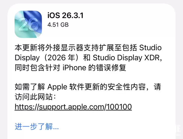 苹果iOS 26.3.1正式版更新详解:专攻外接显示器支持,国行AI功能何时到来?