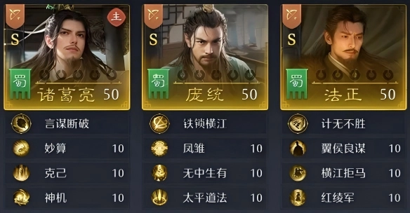 1、核心阵容:诸葛亮 + 庞统 + 法正