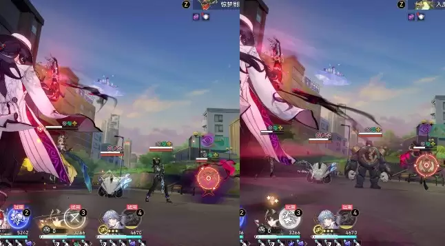 第四步:同步调整多个目标血量。将操作目标转为缇宝,让其对场地中央的扑满进行普攻。之后,切换回丹恒・腾荒,普攻位于扑满右侧的另一个怪物。此步骤的核心策略,是将场上至少两名敌人的生命值,同时控制在“不死途”追加攻击的预期斩杀线内。