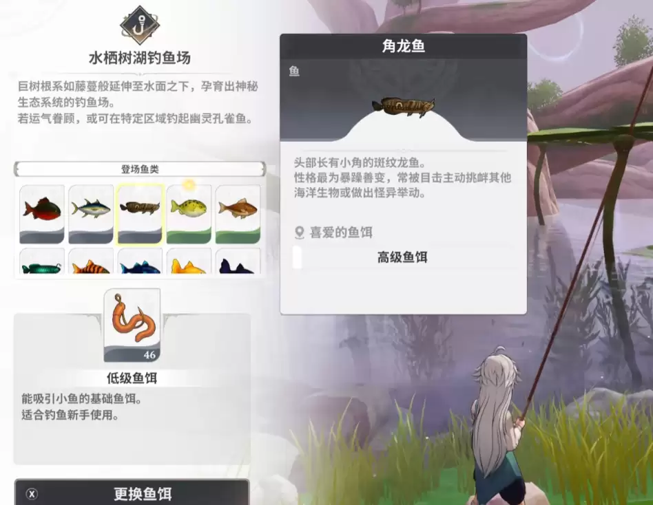 出没于森林深处,玩家有两种选择:森林关卡的普通钓鱼场或更具探险氛围的水栖树湖钓鱼场。其头部生有独特角状结构,性情较为警觉。追求效率可前往普通钓鱼场;若享受探索过程,水栖树湖的秘境环境或能带来额外惊喜。它是该区域水域中的稀有战利品。