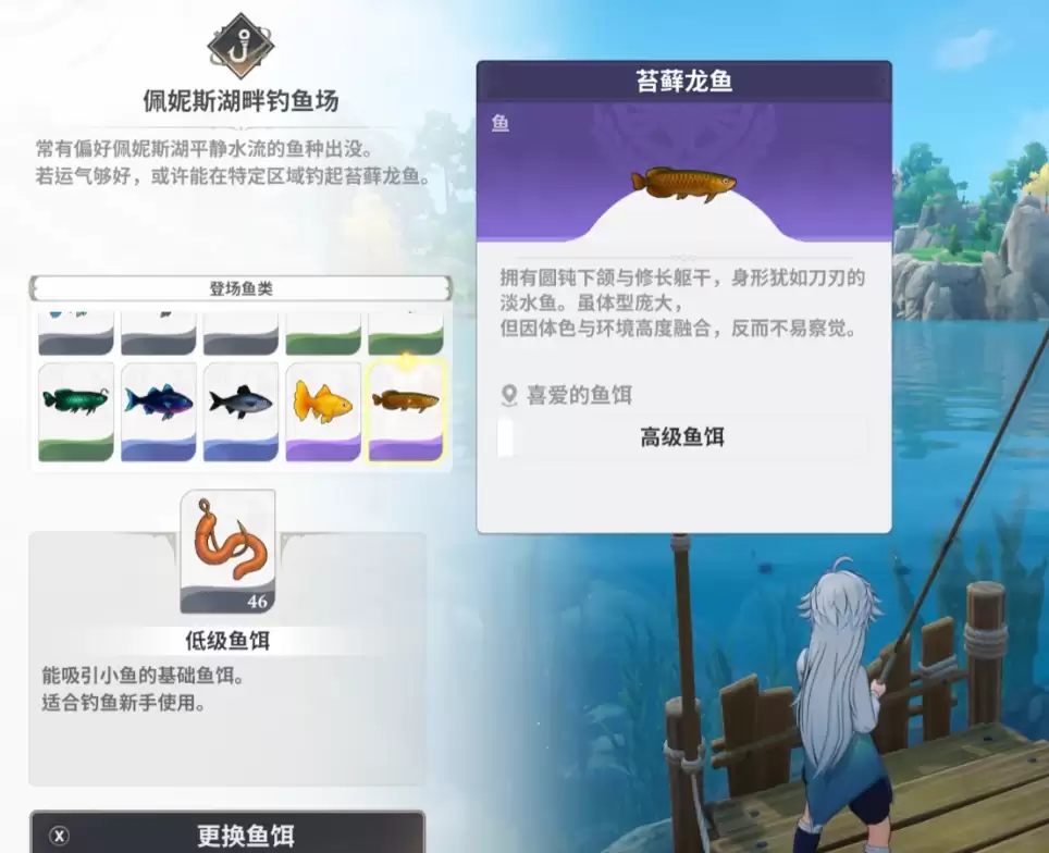 其名称直接关联其生态——偏好植被繁茂、潮湿的环境。它的出没地点锁定在佩妮斯湖畔。这片区域风景秀丽,但水下与岸边可能栖息着其他魔物。苔藓龙鱼善于伪装,常潜伏在湖岸的水草丛中,垂钓时需留意水面异常波纹。前往此处前,建议优先解锁附近传送点,或做好穿越林地的准备。