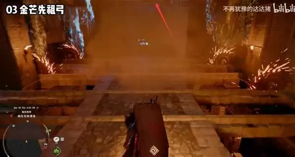谨慎穿过这个布满机关的区域,随后攀爬而上,目标弓箭便近在眼前。