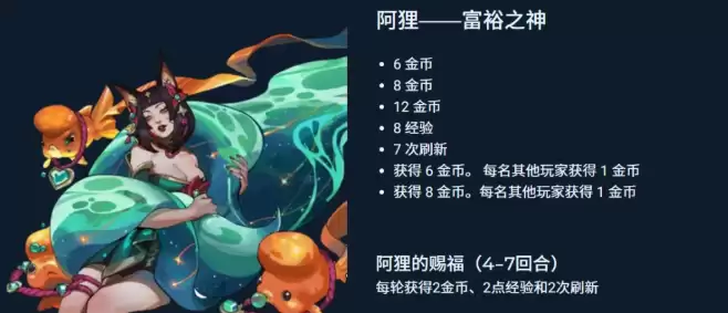 擅长经济运营与速本流?诡术妖姬·阿狸是你的最优选。她提供的额外金币、经验值以及免费刷新机会,能有效加速你的等级提升和搜卡节奏,助你快速成型高费卡阵容。