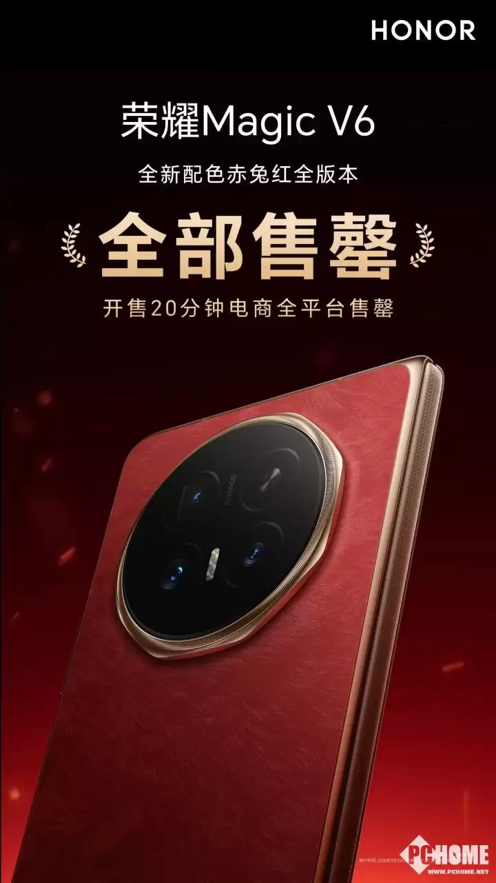 荣耀Magic V6赤兔红首销告捷!开售20分钟全平台售罄