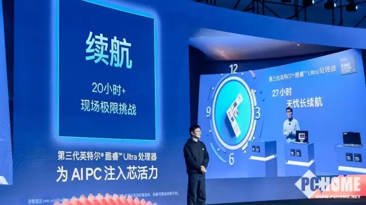 对于任何移动计算设备,续航能力都是至关重要的硬指标。得益于Intel 18A制程带来的卓越能效比,第三代酷睿Ultra平台在电池续航方面实现了里程碑式的突破。部分合作厂商的轻薄本新品,其官方标称续航时间最长可达27小时,轻松满足全天候移动办公、在线学习及旅途娱乐的电力需求。