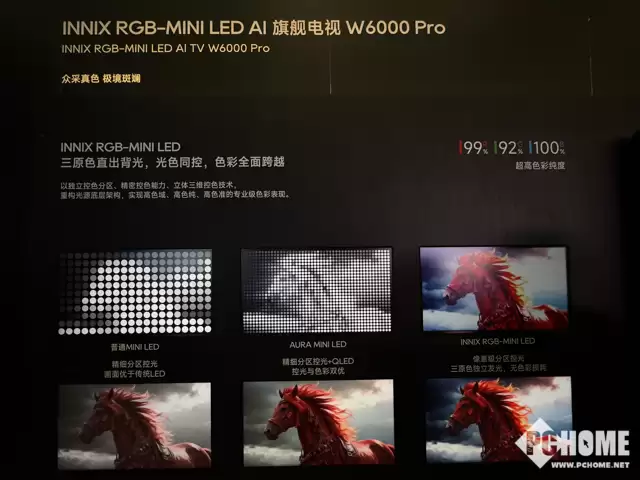 除了外观形态的革新,追觅电视在核心显示技术——背光系统上也实现了重要突破。本次展出的多款旗舰机型均应用了前沿的RGB-Mini LED技术。该技术的核心优势在于直接采用红、绿、蓝三原色LED作为背光源,从而实现了从传统单一亮度控制到对“光线与色彩”同步精准控制的革命性跨越。