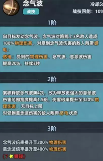 丸子头的技能体系围绕“感电”状态展开,战术核心在于技能联动。其战技「念气波」能够对直线上的三名敌人造成180%物理伤害,核心效果是为命中的目标附加“感电”状态。感电状态下的敌人,后续受到「念气波」或其强化技能「蓄念波」攻击时,将额外承受20%的伤害,持续3秒。因此,实战中的首要操作永远是优先施放「念气波」挂上感电,以此激活后续所有技能的增伤效果,实现伤害的阶梯式爆发。