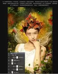主角花仙子的融入是画面的点睛之笔。将其置入画布后,同样利用自由变换调整至合适的体态与比例,使其宛如站立于真实的森林之中。为了让角色与环境浑然一体,图层混合模式(如“叠加”、“滤色”或“柔光”)是强大的合成利器。此外,使用低透明度的柔边画笔,选取环境色在花仙子的裙摆及身侧轻柔地绘制出环境光与阴影。这一步骤能极大地增强角色的体积感与场景的真实互动性。
