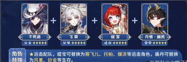 这套阵容堪称当前版本追击体系的终极形态。星期日为全队提供强大的增益效果与行动提前,缇宝的追加攻击协同机制能与不死途的技能产生完美联动,极大提升追击频率。丹恒·腾荒作为核心输出,在两者的加持下能够倾泻出毁灭性的伤害。整个队伍联动紧密,出手循环流畅,是追求极致输出与短轴爆发的顶级选择。