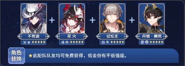 2. 战技点循环优化队:不死途 + 花火 + 记忆主 + 丹恒·腾荒