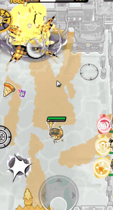 3. 弧形波浪与披萨吸收:该技能分为两个阶段。首先,BOSS会朝向玩家释放一道大范围的弧形波浪攻击。与此同时,它会以自身为中心产生吸引漩涡,吸收场上的披萨道具。这一机制是整场战斗的策略转折点,处理方式至关重要。