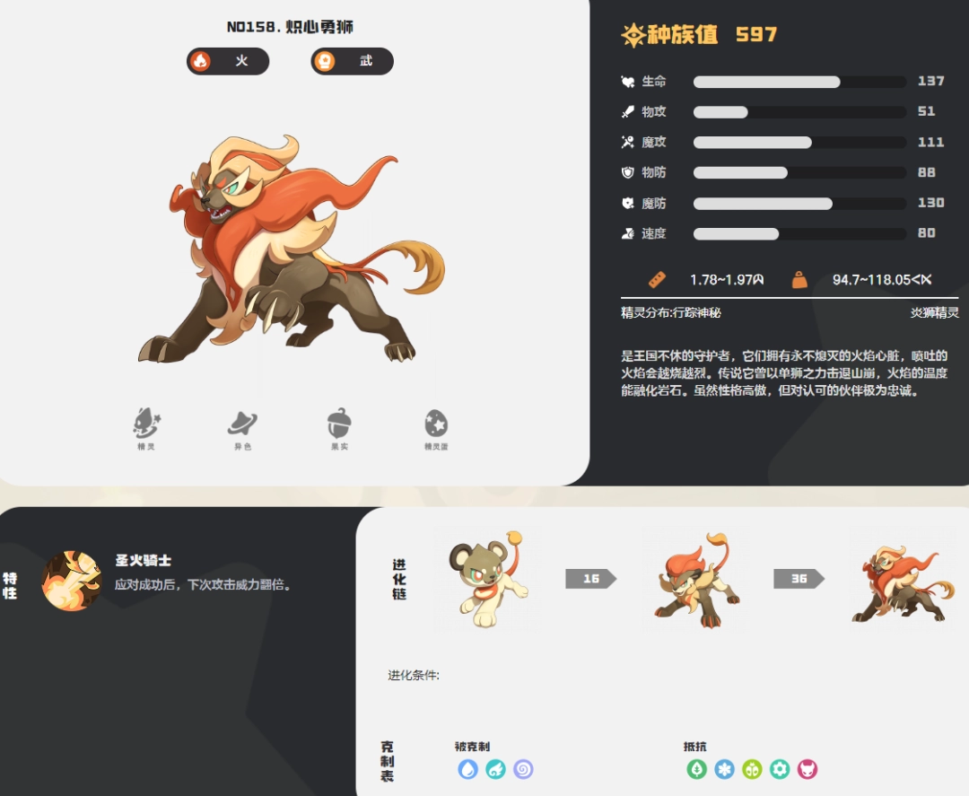 洛克王国世界炽心勇狮图鉴