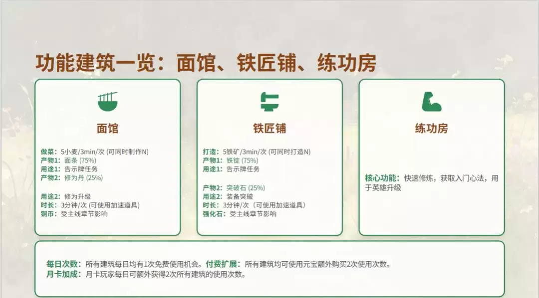 为初入和平谷的侠客提供几条关键心得:首先,资源优先投入玉皇宫与核心生产建筑的升级,这是加速发展的引擎。其次,坚持每日清完告示板任务,保障熊猫币的稳定收入。第三,注重生产与加工建筑的协同规划,确保资源供应链条顺畅,避免断档。最后,积极参与社交互动与游戏活动,许多限定奖励与稀有资源皆源于此。