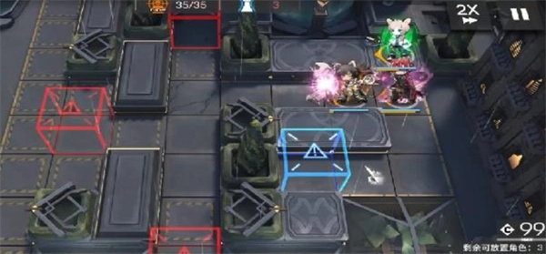本关卡的核心思路在于发挥贝洛内的单体作战效能。为其配备三技能,并将其精准部署于图中标记的治疗地格上。随后只需等待敌方单位进入其射程,即可启动技能。贝洛内将凭借高额伤害与闪避机制,实现以一敌多的“单挑”场面,显著降低前期治疗与防守压力。